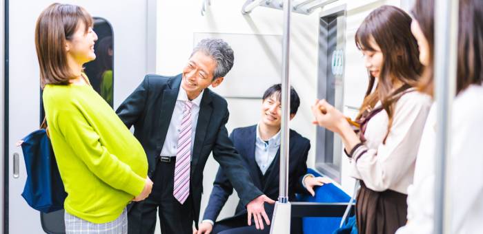 もしも自分が優先席に座っていて、妊婦さんや高齢者、身体の不自由な方などが近くに来た場合は、「誰かが譲るだろう」とは考えず、速やかに席を譲りましょう。